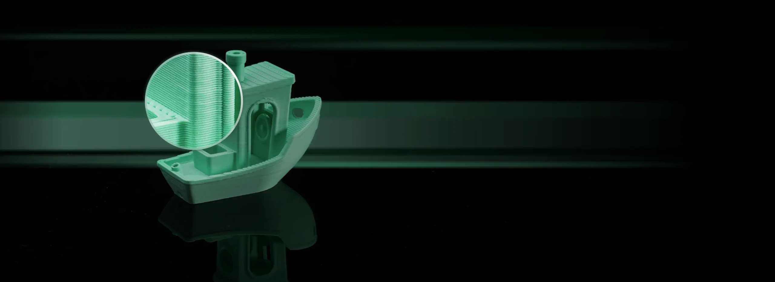 Aktif XY titreşim telafi algoritması ve gelişmiş basınç dengeleme sistemi sayesinde P1S Combo, yüksek hızda bile olağanüstü pürüzsüz yüzeyler üretir. Bu teknoloji, köşelerdeki titremeleri ve filament gecikmelerini önleyerek her detayda temiz, keskin ve profesyonel baskılar sağlar.